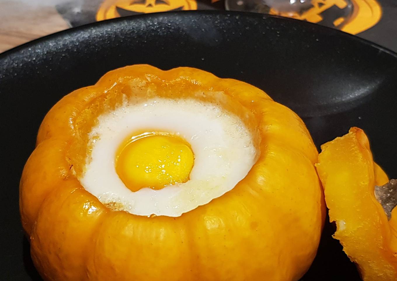 - Cassez un œuf au-dessus de chaque mini potiron puis enfournez environ 5 à 10mn à 180°C en surveillant la cuisson des œufs.
