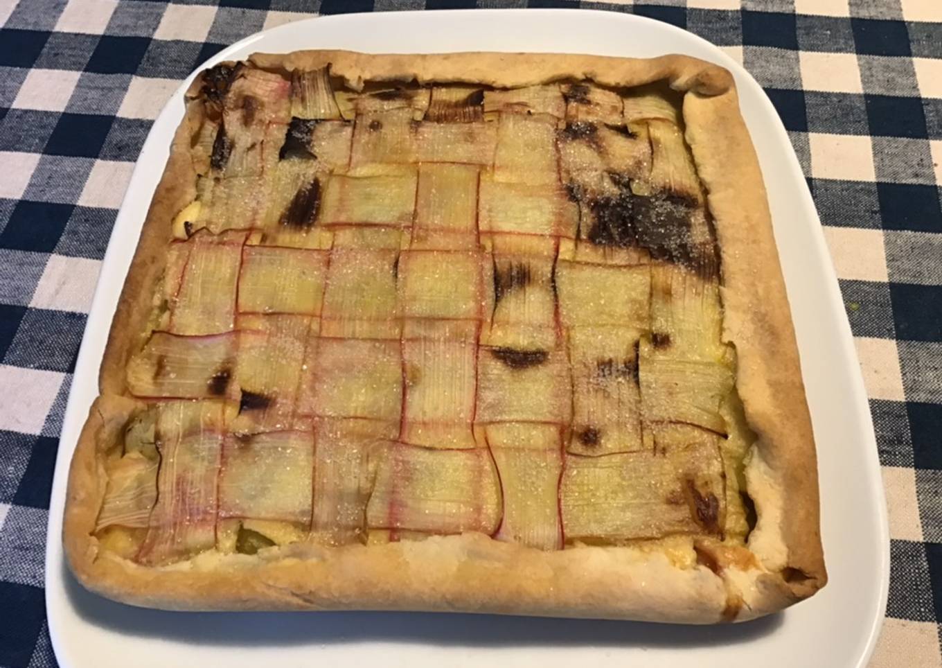 Tarte quadrillée à la rhubarbe et vanille,pâte brisée au sucre de canne