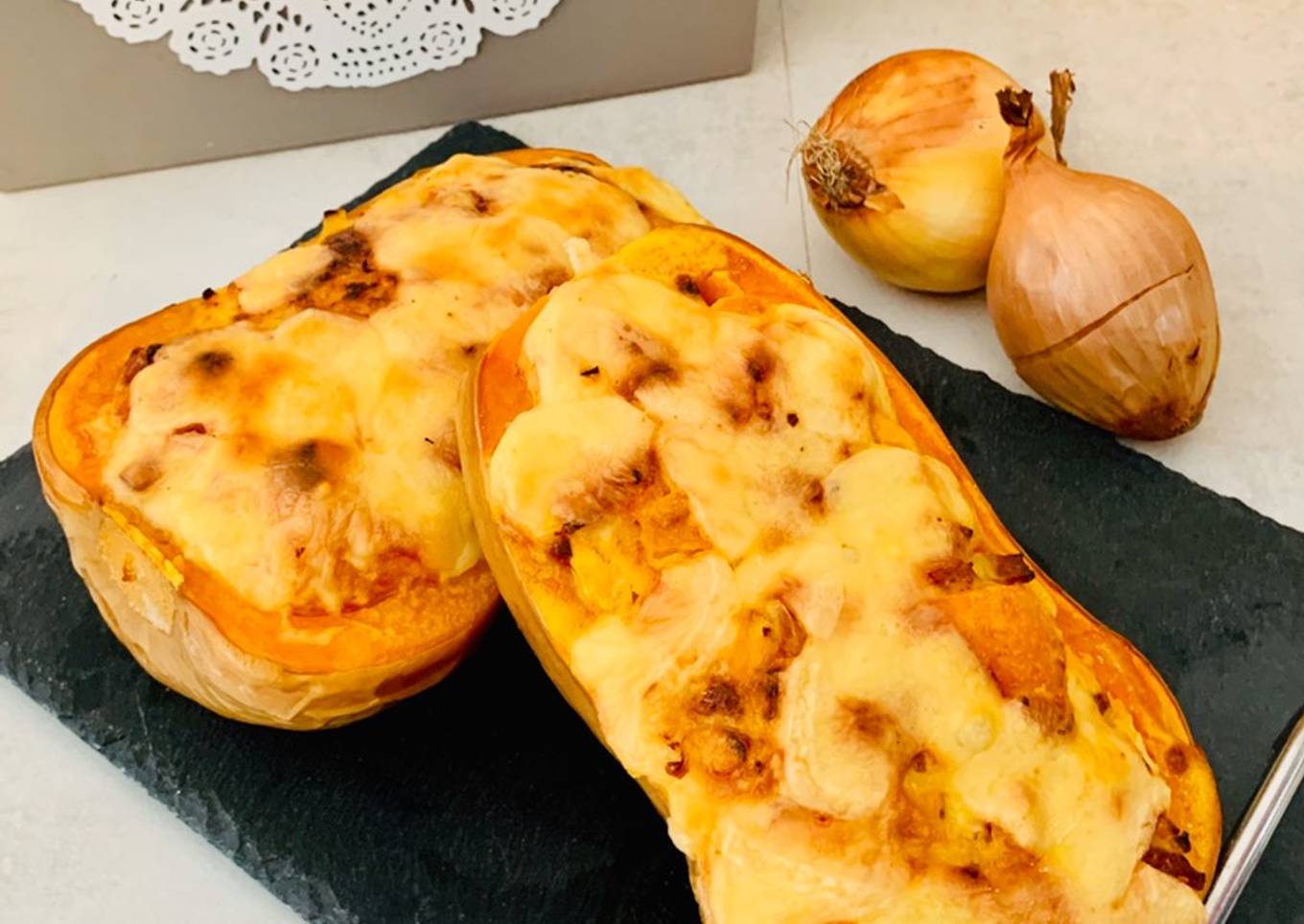 Instructions to make to make Butternut farcie lardons & oignons gratinée raclette