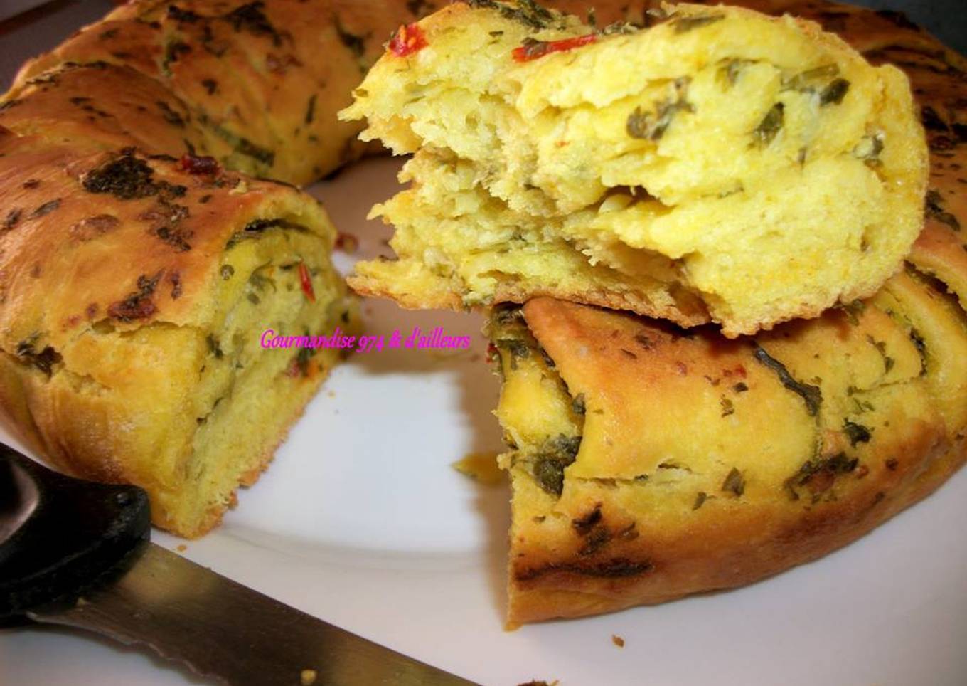 Depuis un petit moment je voulais faire ce pain, il est délicieux et bien parfumé, avec de l’ail, du beurre, du persil, j'ai ajouté du curcuma, (quelques petits piments verts & rouges (facultatif) du fromage philadelphia et de l'huile d'olive :D